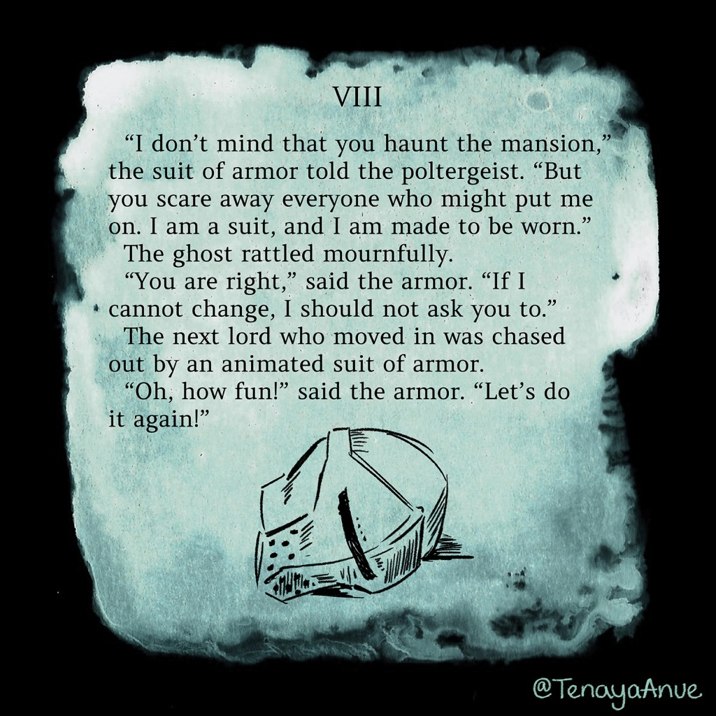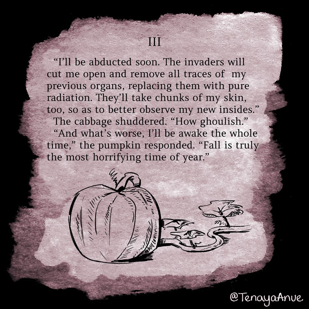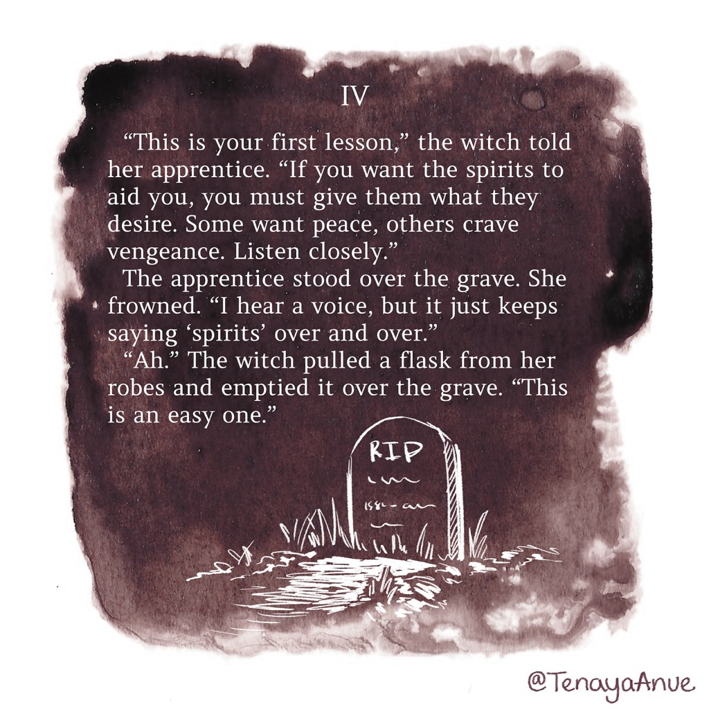 I am currently working on an adult fantasy novel! If you need something to read in the meantime, check out my spooky-themed series of illustrated microfiction below.